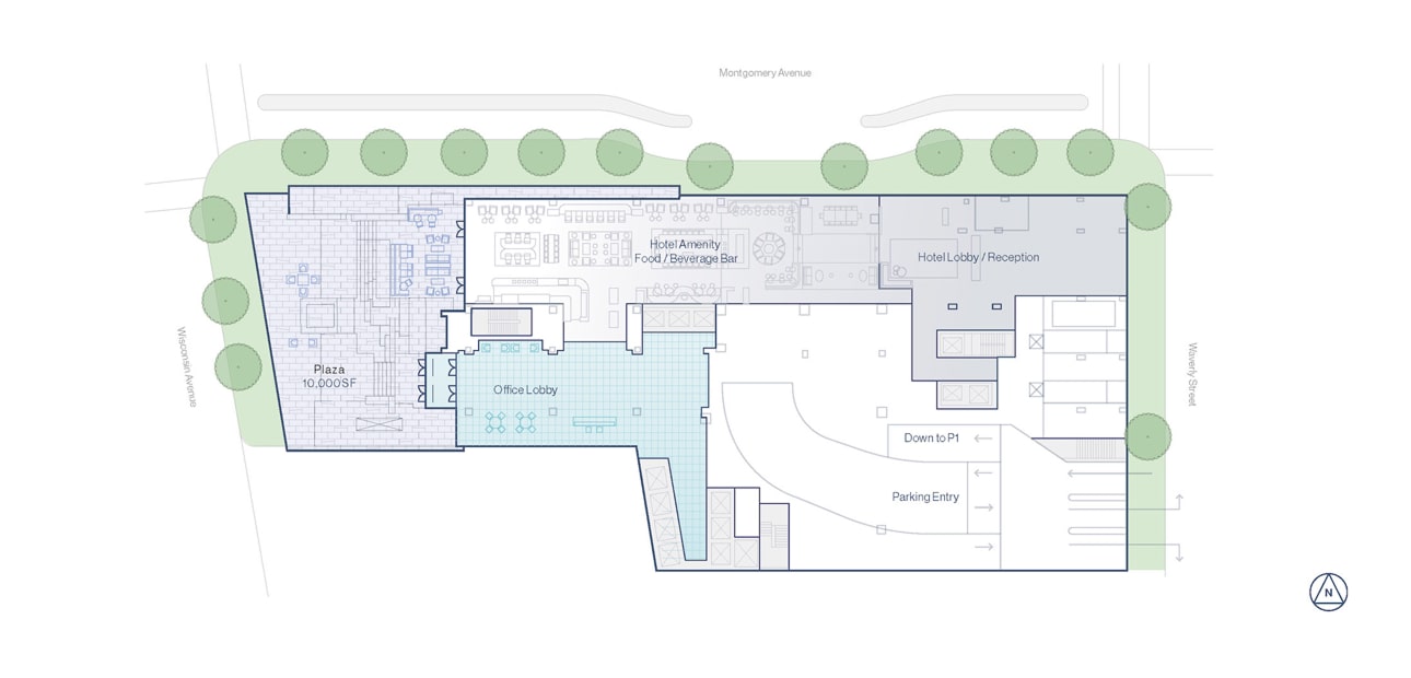 ويضم أيضا منطقة كاملة للمطاعم. ومواقف سيارات على مساحات كبيرة تناسب حجم المجمع، ويتوفر بالمجمع التجاري كافة الخدمات والسلع ويتم تجهيز المجمع على أعلى مستوى لكي يلاءم المنافسة بالسوق.